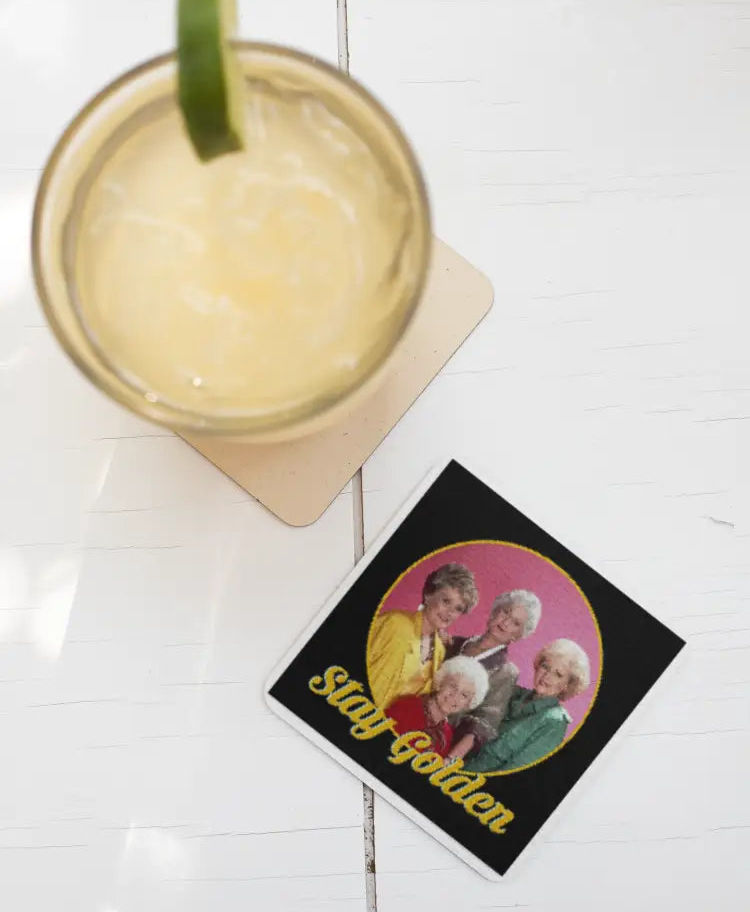 The original queens of side-eye and sass, captured in all their pastel power. This coaster isn’t just nostalgic—it’s a whole damn mood. For anyone who handles life with sarcasm, shade, and maybe a little vodka, this is your call to stay bold, stay fabulous, and above all—stay golden. Because being basic? Not in this house.